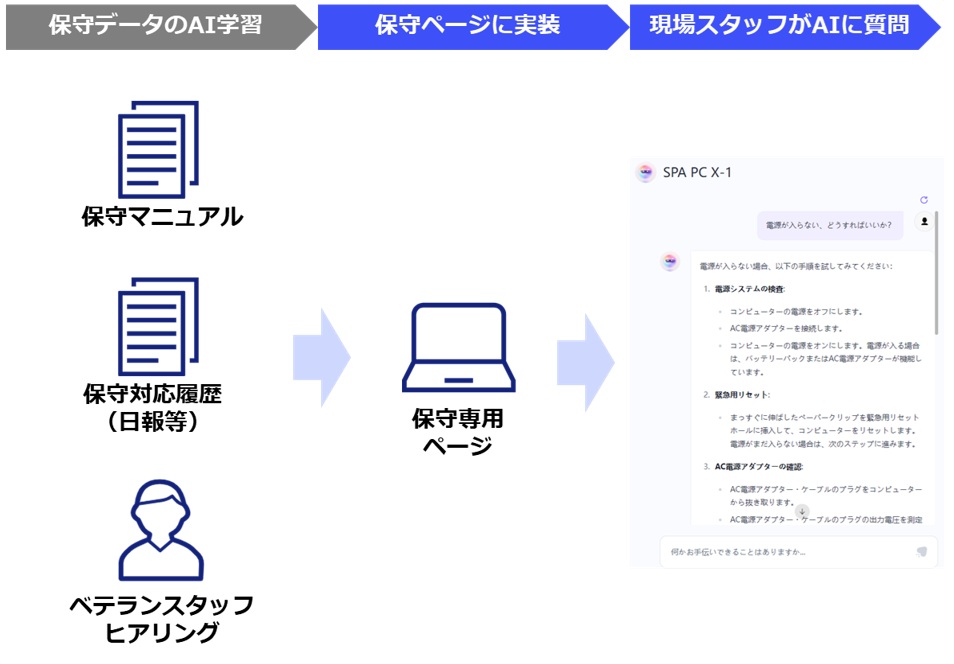 対応:GBaseへの製品保守データ・保守対応履歴・ベテランのノウハウヒヤリングデータの投入。